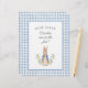 Charming Peter Rabbit holding a carrot with gingham border. Editable text; transfer to any type of card. How many candies are in the jar