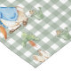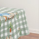 Bring timeless charm and whimsical elegance to your next gathering with this Peter Rabbit-inspired tablecloth! Featuring a sweet watercolor bunny in a blue coat surrounded by garden tools, carrots, and leafy greens, all set against a soft green gingham background, this 100% cotton tablecloth adds a vintage countryside feel to any room or celebration.