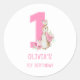 Watercolor Flopsy Rabbit Pink First Birthday Classic Round Sticker. Matching items available.