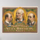 Vintage Adam Forepaugh & Sells Brothers circus poster showing bust portraits of Peter Sells, Adam Forepaugh, and Lewis Sells, circa 1900.