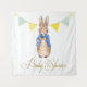 Peter the Rabbit with buntings and Baby Shower in gold text