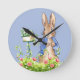Peter the Rabbit checking bird house Round Clock