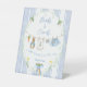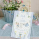A Charming Delivery from Mr. McGregor's Garden! The Books and Cards Pedestal Sign features a custom hand-painted frame of a crisp blue vertical stripe pattern accented with a lush greenery wreath, creating a clean, classic, and welcoming look. A sweet watercolor clothesline is strung across the centre, proudly displaying tiny, adorable items, each subtly featuring Peter Rabbit. The scene is completed with a darling blue bow holding a bunch of fresh carrots, and bright, cheerful daffodils, all rendered in a soft watercolor style. Easily add your own details and change the font style, size colour and placement if you would like to.
