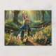 Peter the rabbit in the enchanted forest. First birthday greeting in gold text.