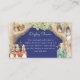 This gender neutral baby shower theme features Peter the Rabbit, his family and his pals in a forest and meadow setting. The palette is colourful with a dark blue background and light coloured text. Beatrix Potter illustrations are included on the front and back, You can easily fill in the template with your own details or go into further editing to change the font style, size, colour and placement if you wish. See the matching items in the Peter the Rabbit Forest Friends Baby Shower Collection