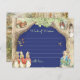 This gender neutral baby shower theme features Peter the Rabbit, his family and his pals in a forest and meadow setting. The palette is colourful with a dark blue background and light coloured text. Beatrix Potter illustrations are included on the front and back, You can easily fill in the template with your own details or go into further editing to change the font style, size, colour and placement if you wish. The dark blue background enables your guests to use white or other light coloured paint pens to make this keepsake truly unique. They will show up boldly, dry quickly and won't smudge. See the matching items in the Peter the Rabbit Forest Friends Baby Shower Collection.