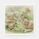 This romantic baby shower paper napkin features a lush hand-painted watercolor garden lettuce patch along with the whimsical rabbits from the Tale of the Flopsy Bunnies by Beatrix Potter. A vintage storybook tale, with the romance of an English country garden and the adorable baby bunnies make this collection perfect for your special day. Easily edit it with your details and if you would like you can change the font style, size, colour and placement.