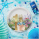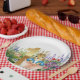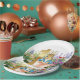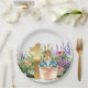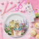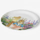 Peter the Rabbit sitting in a terracotta plant pot in his garden first birthday.