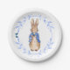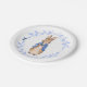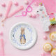 Peter the Rabbit holding a cute blue butterfly with a pastel blue colored leafy wreath. A perfect gift for that special baby shower!