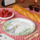 Peter Rabbit amongst beautiful spring blooms in pastel colours blue baby boy plate