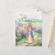 Peter the Rabbit with a watercolour field of lilacs and wild flowers.
