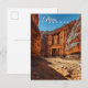 Discover the ancient beauty of Petra, Jordan, with this vibrant postcard featuring the iconic temple nestled amidst deep red rock formations. Flat colours and bold typography highlight the historic grandeur of this world-renowned archaeological site.