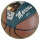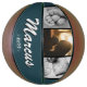 Modern Petrol Green Dad Name Keepsake 3 Photo Collage Basketball. Add your photos, father`s name and year. You can change any text on the basketball. This custom and personalised basketball is a perfect gift and a keepsake for a dad, son, brother,...