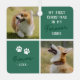 Modern new pet christmas ornament featuring 2 photos of your dog or cat, stylish green squares, with the saying "my first christmas in my forever home", the pets name, year, and 2 paw prints.