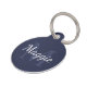 features personalised pet's name in white script font style and monogram in light navy blue serif font style as background, on navy blue background,