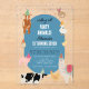 A hand drawn cute blue petting zoo party animals design featuring illustrations of a goat, goose, hamster, llama, pig, baby chick, cow and rabbit . A beautiful petting zoo themed design ideal for kids petting zoo themed birthday parties. Customize this cute petting zoo animals birthday invitation and make it your own!