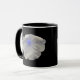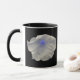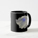 This pretty mug features a photograph of a petunia flower that has been manipulated to make the centre of the flower glow bright blue. The outer petals are white and the veins running out from the centre of the flower also glow blue. The flower is on a black background to make it stand out. The design is shown on a black ringer style mug, but is also available on lots of other styles and colours of mugs.