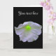 This pretty greeting card features a photograph of a petunia flower that has been manipulated to make the centre of the flower glow bright green. The outer petals are white and the veins running out from the centre of the flower also glow green. The flower is on a black background to make it stand out. There is customisable white text on the front of the card making it suitable for any occasion. The inside of the card is blank.