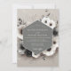 This elegant design features a sophisticated and artistic display of florals. Painterly white and charcoal anemones bloom softly against a warm, neutral taupe background. Wispy, delicate botanicals in monochromatic tones complete this modern, romantic arrangement for your special union.