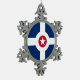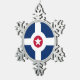 The snowflake design proudly displays the distinctive flag of Indianapolis, featuring a field of dark blue with four white lines extending from the centre to create four quarters. In the middle is a prominent white circle with one red star, symbolising the city's unity and resilience.