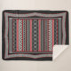 This ultra-plush Sherpa throw is a stunning piece of wearable art, drawing inspiration from the powerful, graphic, and geometric designs found in the ceramics and ritual artefacts of the Minoan civilisation on ancient Crete. The design features bold, alternating vertical bands of patterns, including repeating chevron triangles, stylised wave chains, and dense crosshatching in a dramatic palette of black, rich red, and creamy white. This stark, compelling colour scheme evokes the sophisticated ornamentation often found in the royal apartments of the Palace of Knossos.