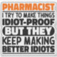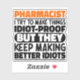 Funny Pharmacist Sayings "Pharmacist I Try To Make Things Idiot Proof But They Keep Making Better Idiots". Grab this Funny Pharmacist design as a funny gifts for an awesome mum, dad or friend.