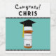 Creative pharmacy school graduation gift or party bottle labels for pharmacist grad featuring prescription bottle with black grad cap and gold tassel. To personalise edit text to add name and year.