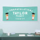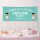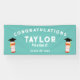 Creative school of pharmacy grad congratulations banner for pharmacist graduation featuring prescription bottles with caps. To personalise edit text to add name and year or otherwise customise.