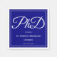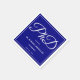 Paper napkins for a PhD graduation party with a blue background and white lettering.