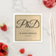 Paper napkins for a PhD graduation party with a black, grey, and gold (gold tone - non-foil) design.