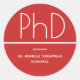Sticker for a PhD graduation party with a red and white design. This item is part of a graduation party collection that includes an invitation, photo announcement, paper napkins, place cards, and more. Customise these items, add them to your cart, and celebrate this major achievement.