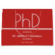 Gift bags for a PhD graduation party with a red and white design. This item is part of a graduation party collection that includes an invitation, photo announcement, paper napkins, place cards, and more. Customise these items, add them to your cart, and celebrate this major achievement.