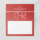 Place cards for a PhD graduation party with a red and white design. This item is part of a graduation party collection that includes an invitation, photo announcement, paper napkins, place cards, and more. Customise these items, add them to your cart, and celebrate this major achievement.