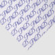 A PhD graduation party tissue paper in white. This tissue paper has a pattern of the word PhD in blue script.