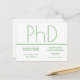 A postcard invitation for a PhD graduation party. This minimalist invitation is white and green. All the words can be customised.