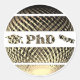 This product is a golden sticker for a successful PhD graduate. It is a nice gift for a doctoral student from family, friends and colleagues at the PhD defence. The elegant design features a golden disco ball with the word PhD.