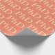 PhD graduation wrapping paper in shades of orange. The word PhD repeats in a pattern across the length of this wrapping paper.