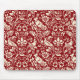 Mouse pad in a William Morris, Art Nouveau wallpaper design of pheasants and hares set among leaves, vines and flowers - cream / winter white on a deep Chinese red background