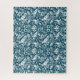 Puzzle in a William Morris, Art Nouveau wallpaper design of pheasants and hares set among leaves, vines and flowers - white on an indigo / denim blue background
