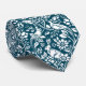 Tie in a William Morris, Art Nouveau wallpaper design of pheasants and hares set among leaves, vines and flowers - subtly textured white on an indigo / denim blue background