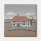Colourful artwork of an old Wealden farmhouse in the English countryside, with an old windmill in the background, and a pheasant who has come to visit. Perfect for anyone who loves folk art.