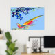 Pheasant Standing poster Comes with a beautiful Pheasant Standing on a rock under a blue and purple tree comes. and IN MANY COLORS.this is a beautiful photo.on this poster
