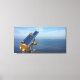 Phenomenal observation telescope with ocean view Canvas Print. Landscape photography wall art design. Scenic photo print with maritime scope instrument, blue sky and sea. High resolution image with vibrant colours. Beautiful artwork for family living room, bedroom, kitchen, dining room, hall etc. Also nice as decor for restaurant, ship, hotel, shop, cafe, bar, pub, business, company, office, shop, store, school, beach home etc. Looks great with or without a frame. Original artwork that can be transfered onto any product in Zazzle including big canvas sizes. This horizontal image can also be cropped if necessary. Adding your own text is an option too. Nautical home decor gift ideas for elegant interior of new house. Custom high quality decoration designs to hang up on the wall.
