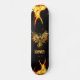 Dd brand skateboard, done in black, with flames on both ends and graphics of a golden Pheonix bird with flames, in the middle. Personalise the name to read what you want.