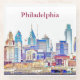 Top your tables with this glass coaster. Image is the Philadelphia skyline, rendered as a colour sketch. Our most popular image!