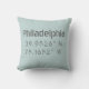 Philadelphia longitude and latitude coordinates in distressed fonts give this throw a modern urban look