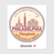 Philadelphia minimalist, colourful art design featuring monuments and landmarks of the city in Pennsylvania.