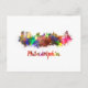 Philadelphia skyline in watercolor postcard