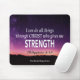 Inspirational Christian Scripture MOUSE PAD with the Bible verse from Philippians 4:13 - I CAN DO ALL THINGS THROUGH CHRIST WHO GIVES ME STRENGTH..  The placeholder name is CUSTOMIZABLE, so you can PERSONALIZE by replacing with your name or choice of text. Part of the INSPIRATIONAL PRINTS Collection by Berean Designs.