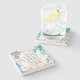 Inspirational quote floral stone coaster depicts a beautiful watercolor lavender and blue wisteria design. It features a portion of Bible Verse Philippians 4:6-7, "Pray about everything; tell God your needs... If you do this, you will experience GOD'S PEACE which is far more wonderful than the human mind can understand."-